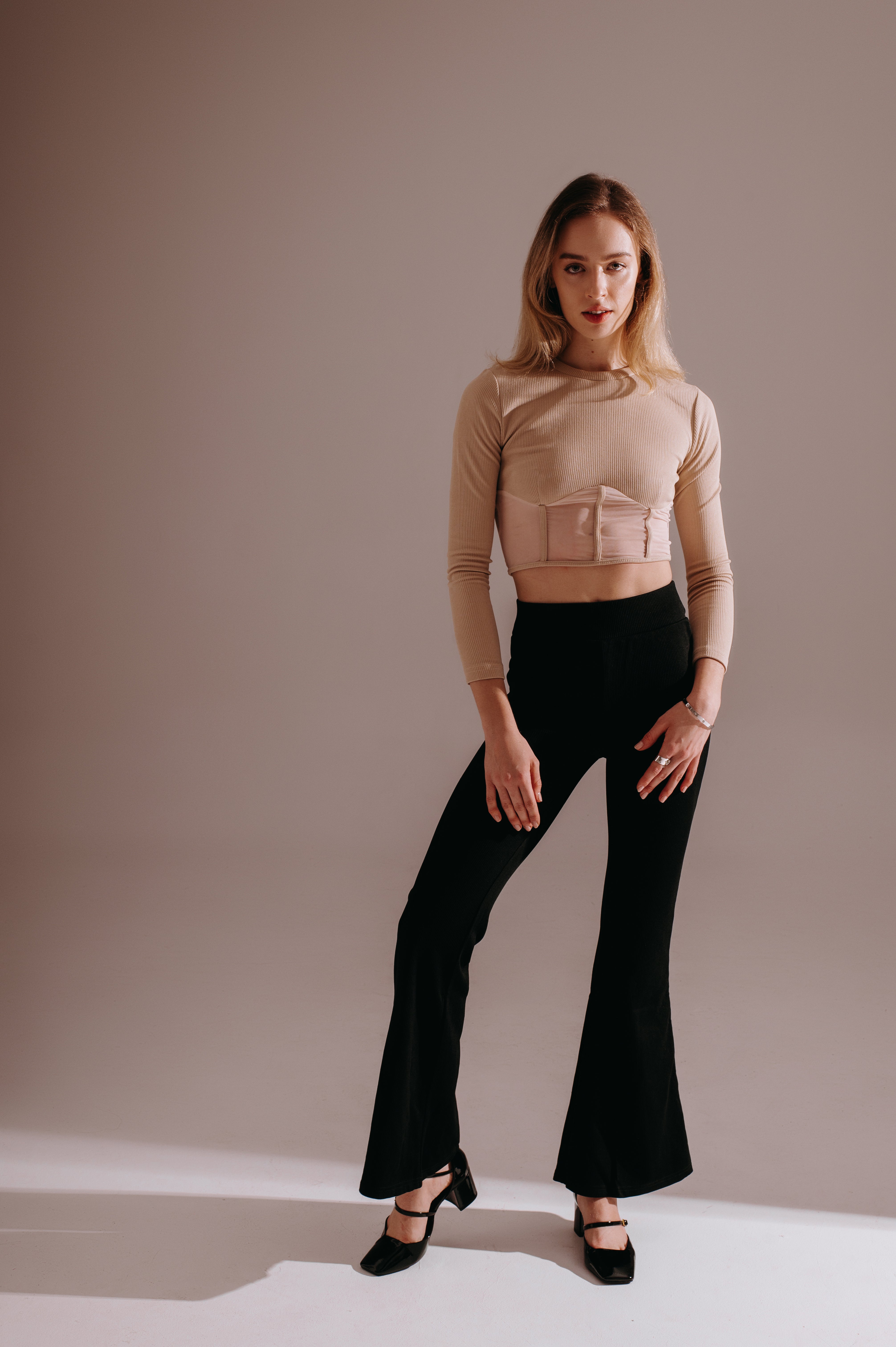 Elevate your wardrobe with the Nora flared pant, designed to blend modern sophistication with timeless comfort. Made from a soft, stretch-enhanced fabric, these pants contour your shape while offering effortless movement. The flattering high-waisted design elongates the legs, and the elegant flared cut adds just the right amount of drama to your stride. Whether you're dressing for the office, an evening out, or a casual-chic day look, the Nora pant delivers polished style with a confident edge—your new favorite go-to for every occasion.