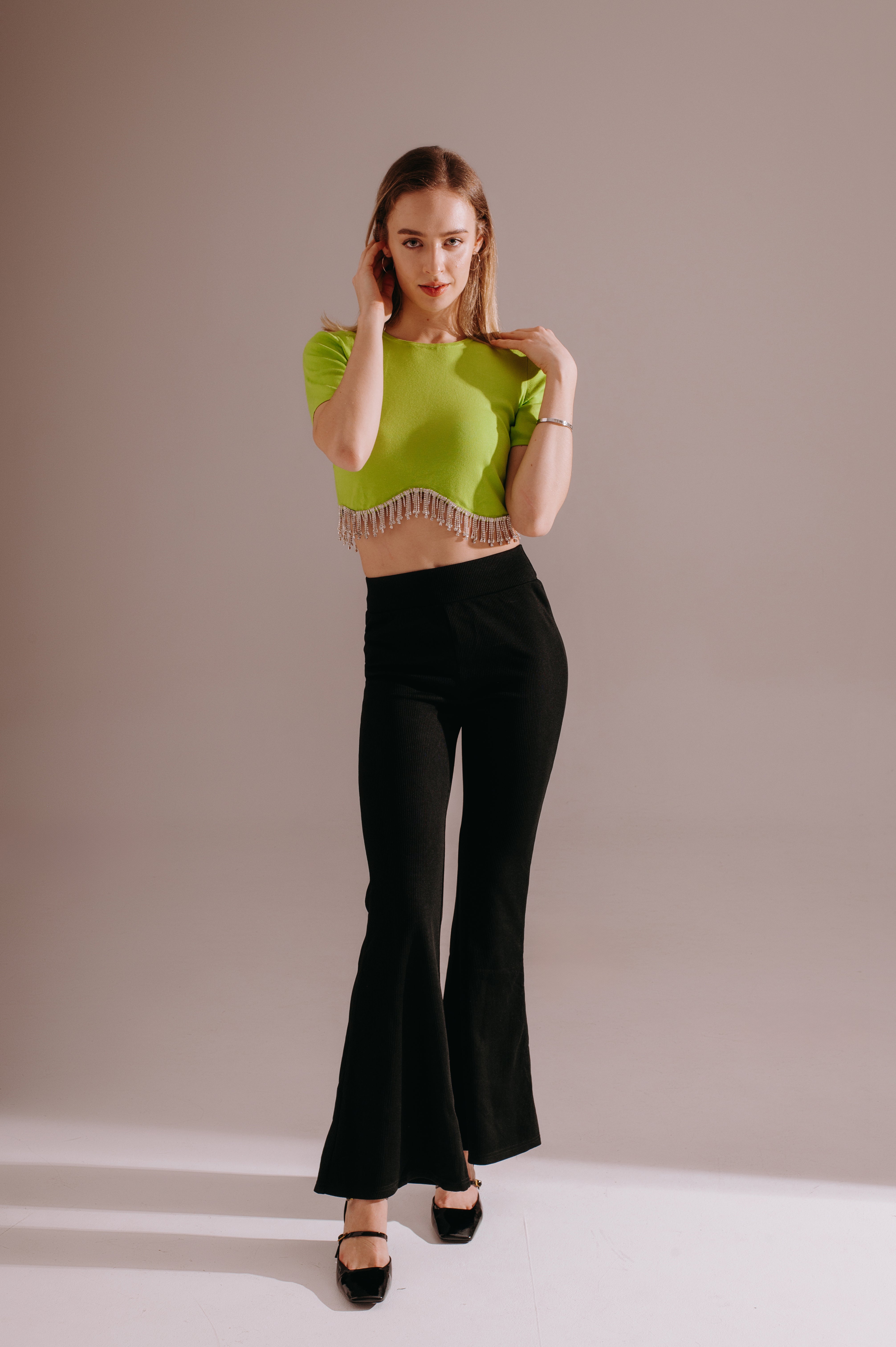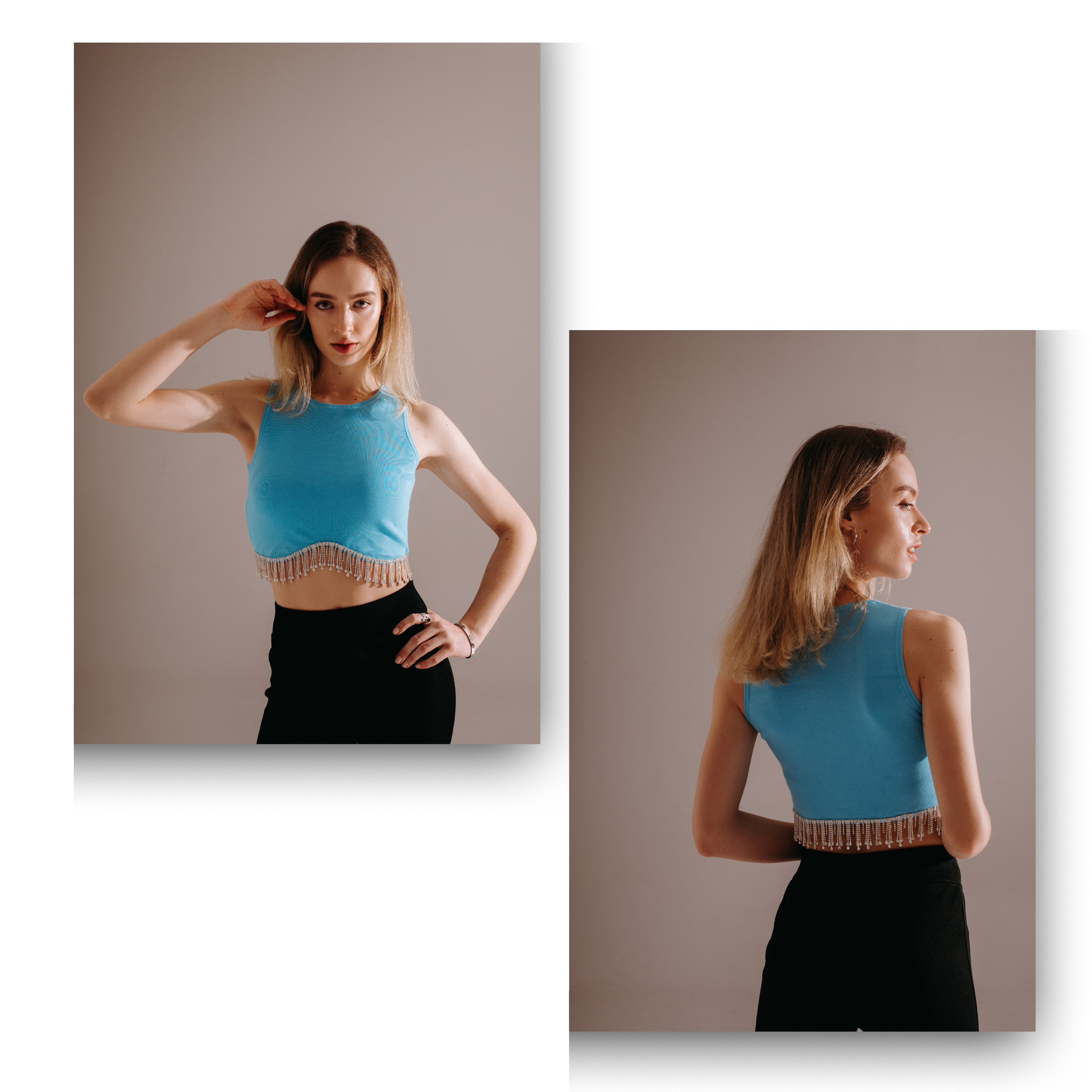 Turn heads in this vibrant tassel crop top, crafted from smooth, body-hugging fabric that radiates confidence. The shimmering beaded tassels add playful movement and glamour, while a hidden side zipper ensures a sleek, comfortable fit. Perfect for parties, festivals, or nights out, this top is your go-to for bold, effortless style.