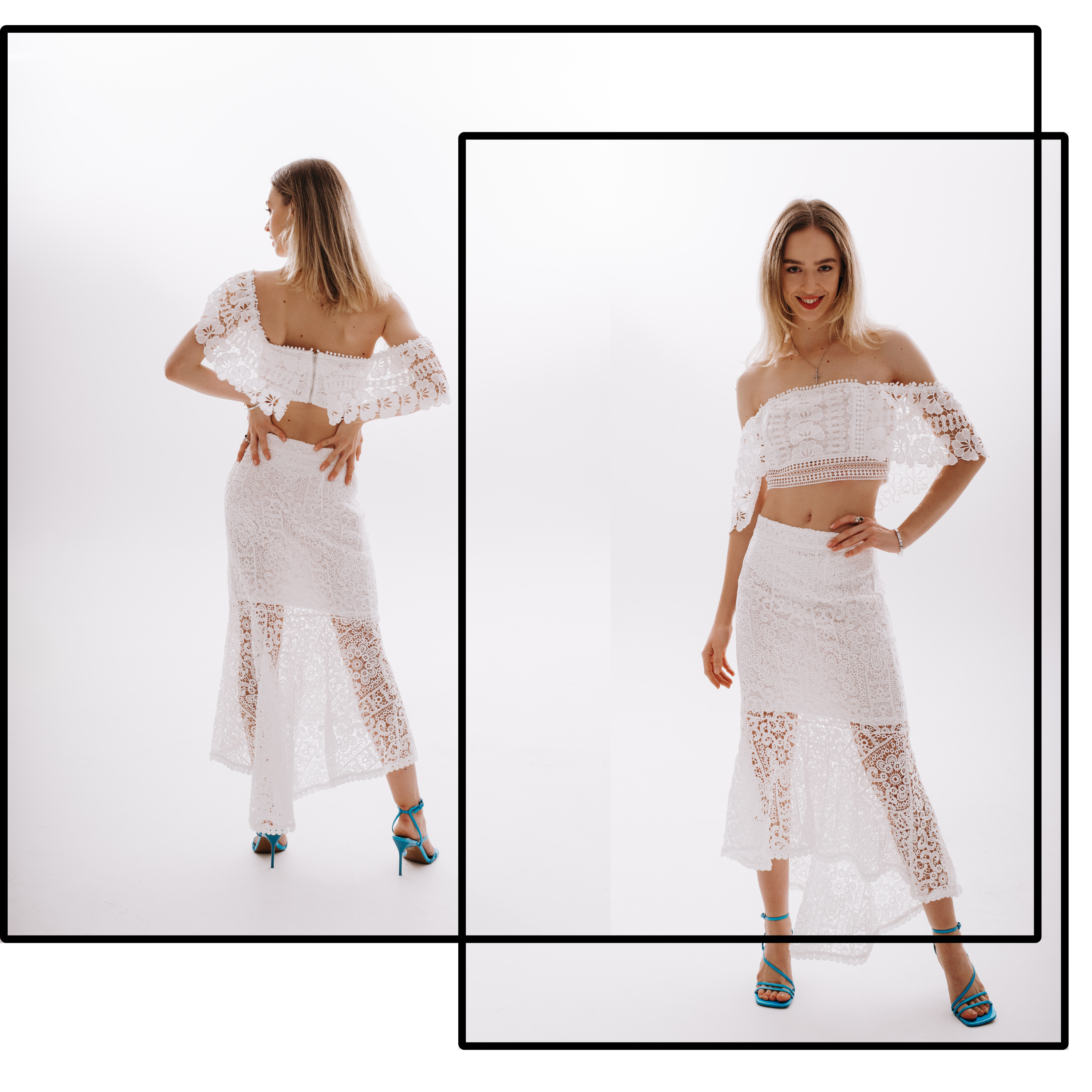 Graceful and refined, this embroidered mermaid skirt hugs the body and flares into a dramatic hem, creating a stunning silhouette. Delicate fabric and intricate needlework add a touch of artisanal charm, making it perfect for special occasions, summer soirées, or bridal-inspired looks. A true statement of timeless femininity.